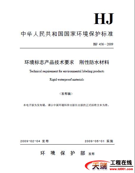 HJ456-2009环境标志产品技术要求 刚性防水材料